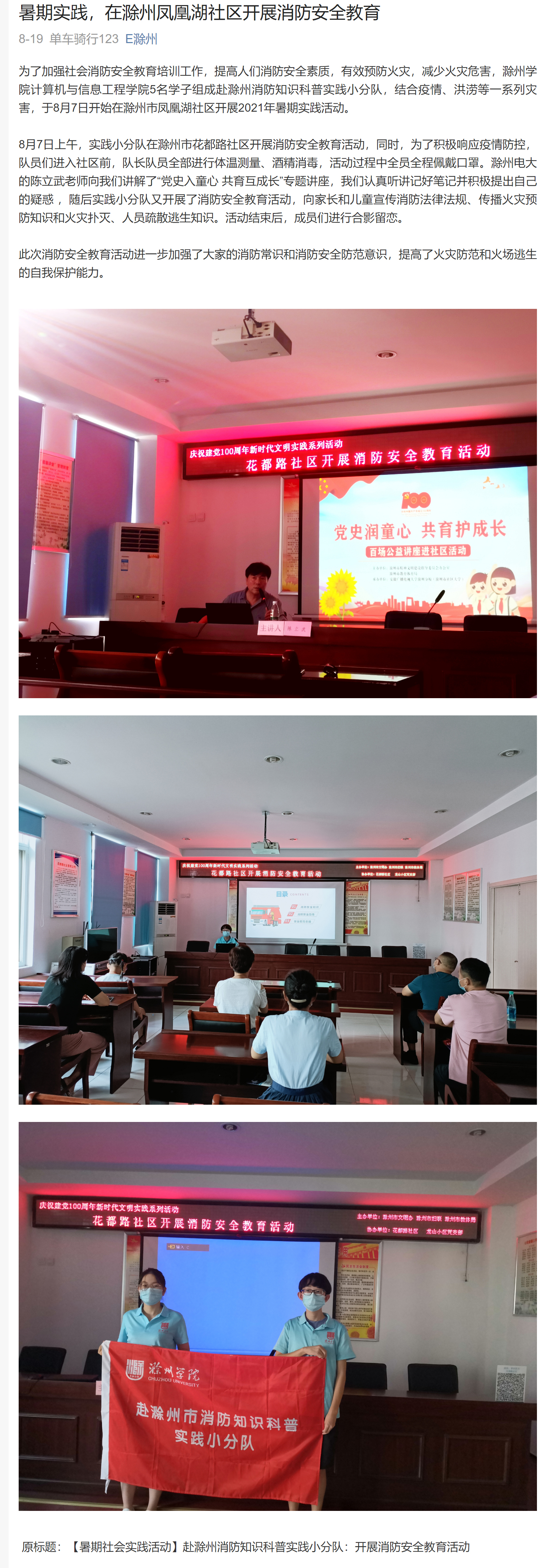 【E滁州】在滁州凤凰湖社区开展消防安全教育