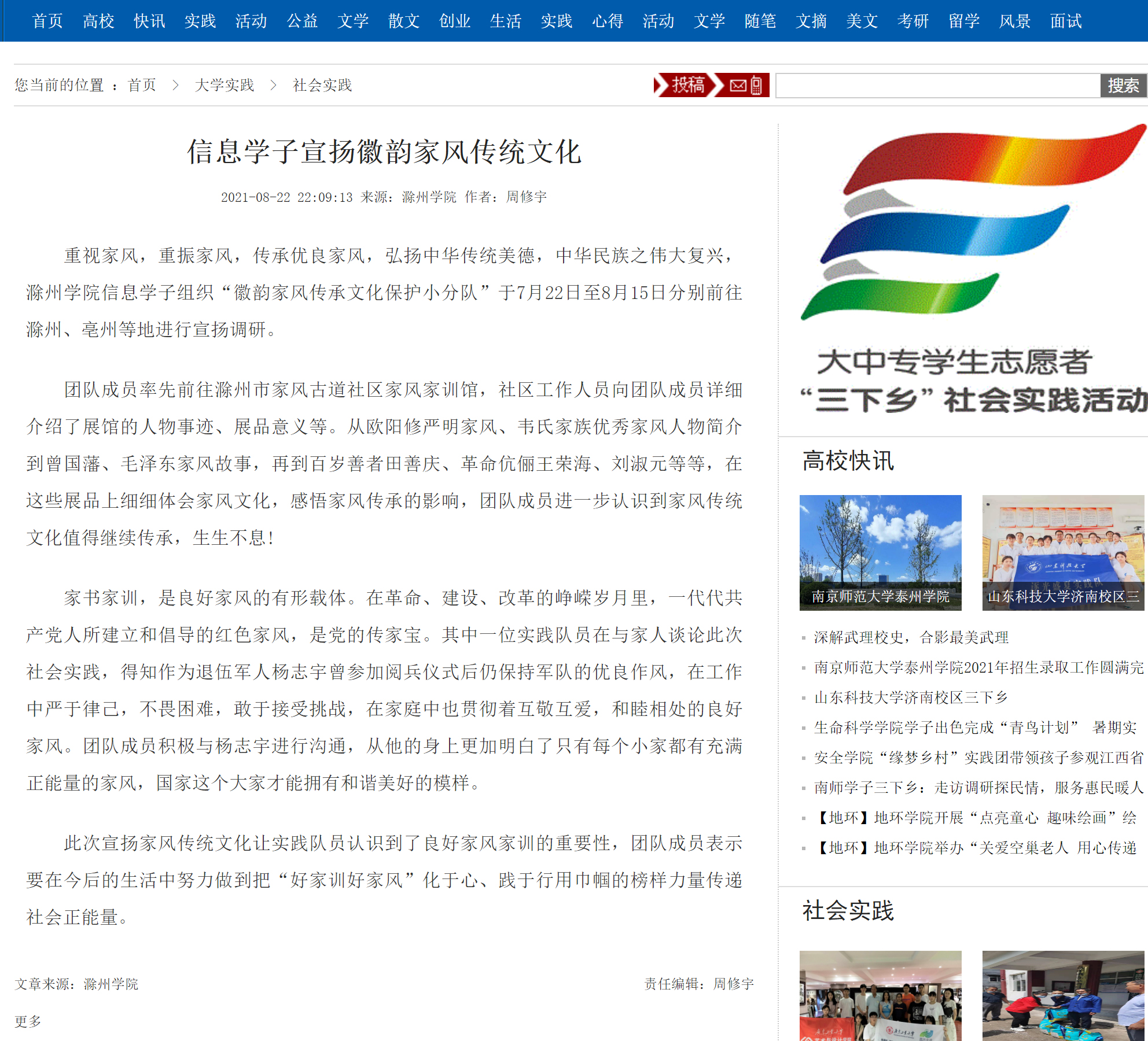【今日大学生网】信息学子宣扬徽韵家风传统文化