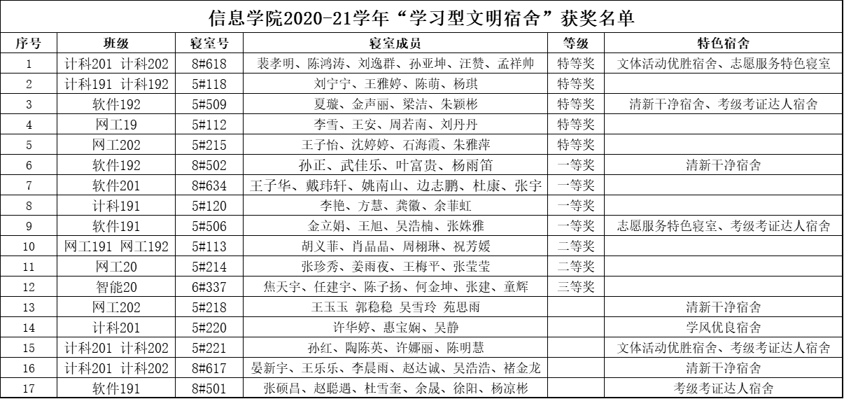 我院2020-21学年“学习型文明宿舍”获奖名单